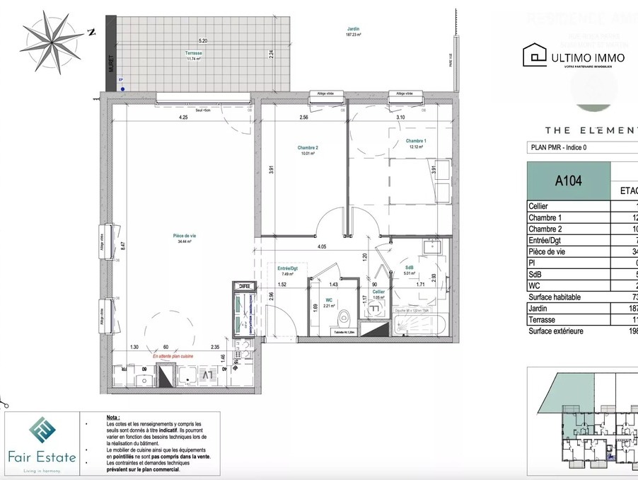 REF D 209 d'une surface de 74.18m2 avec terrasse de 9.93m2 au 2eme étage avec option emplacement...